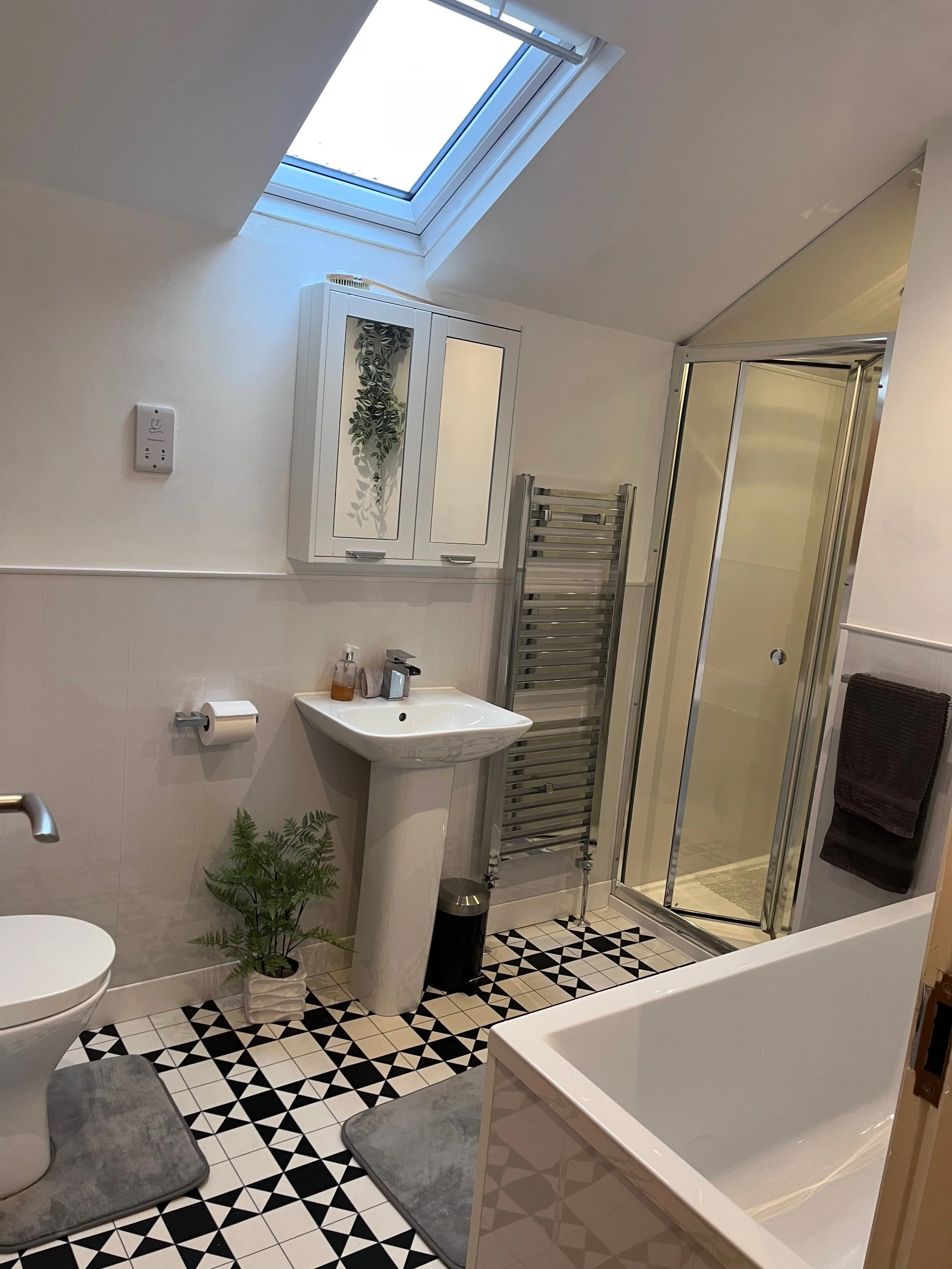 Across the landing is a private bathroom with a plunge bath to aid those aching legs, and a body jet walk-in shower.