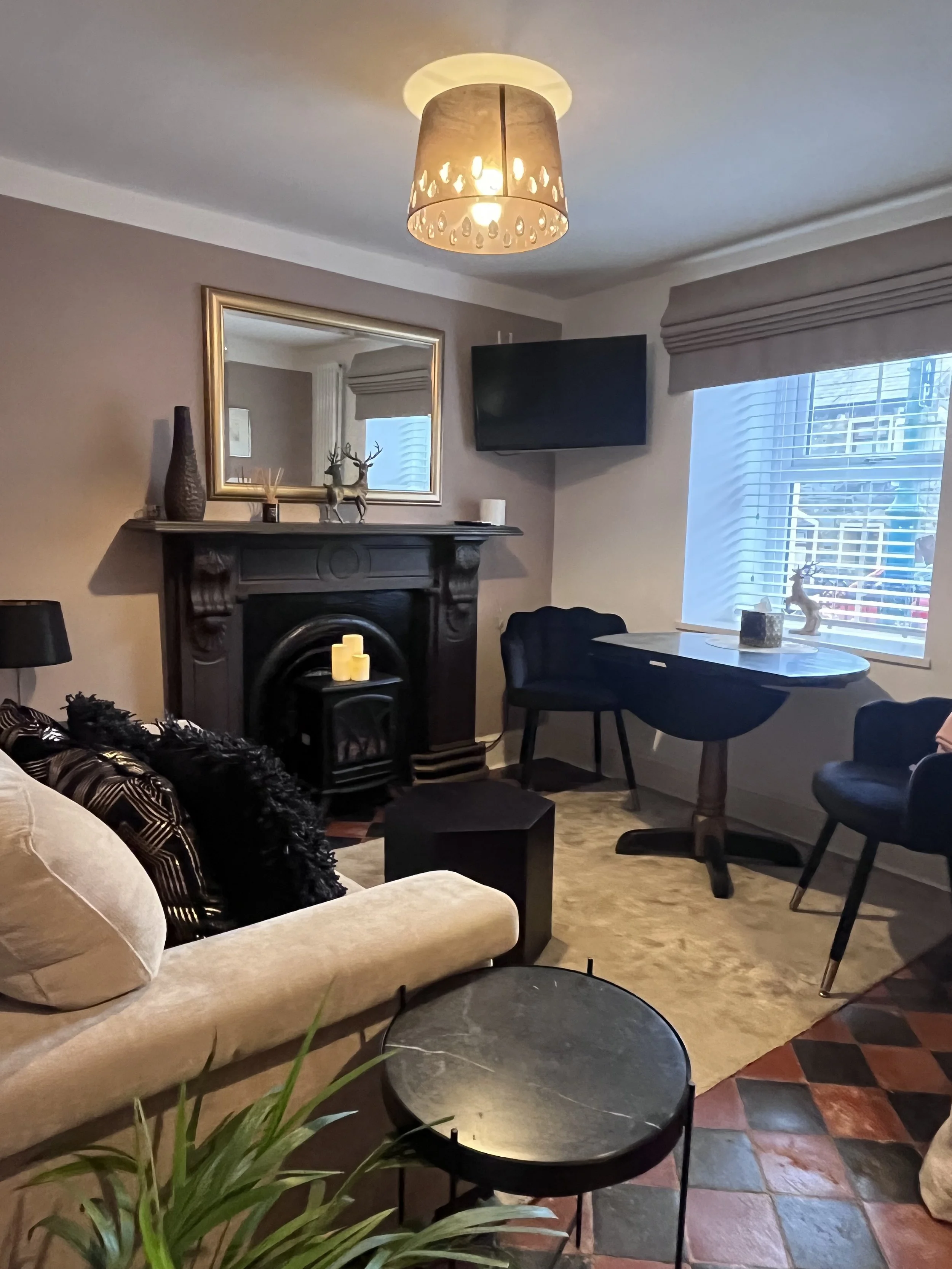 Your private lounge at the front of the property enjoys the setting sun and has a Smart TV, FTTP WiFi point, a comfy sofa and dining table perfect for 2 people.