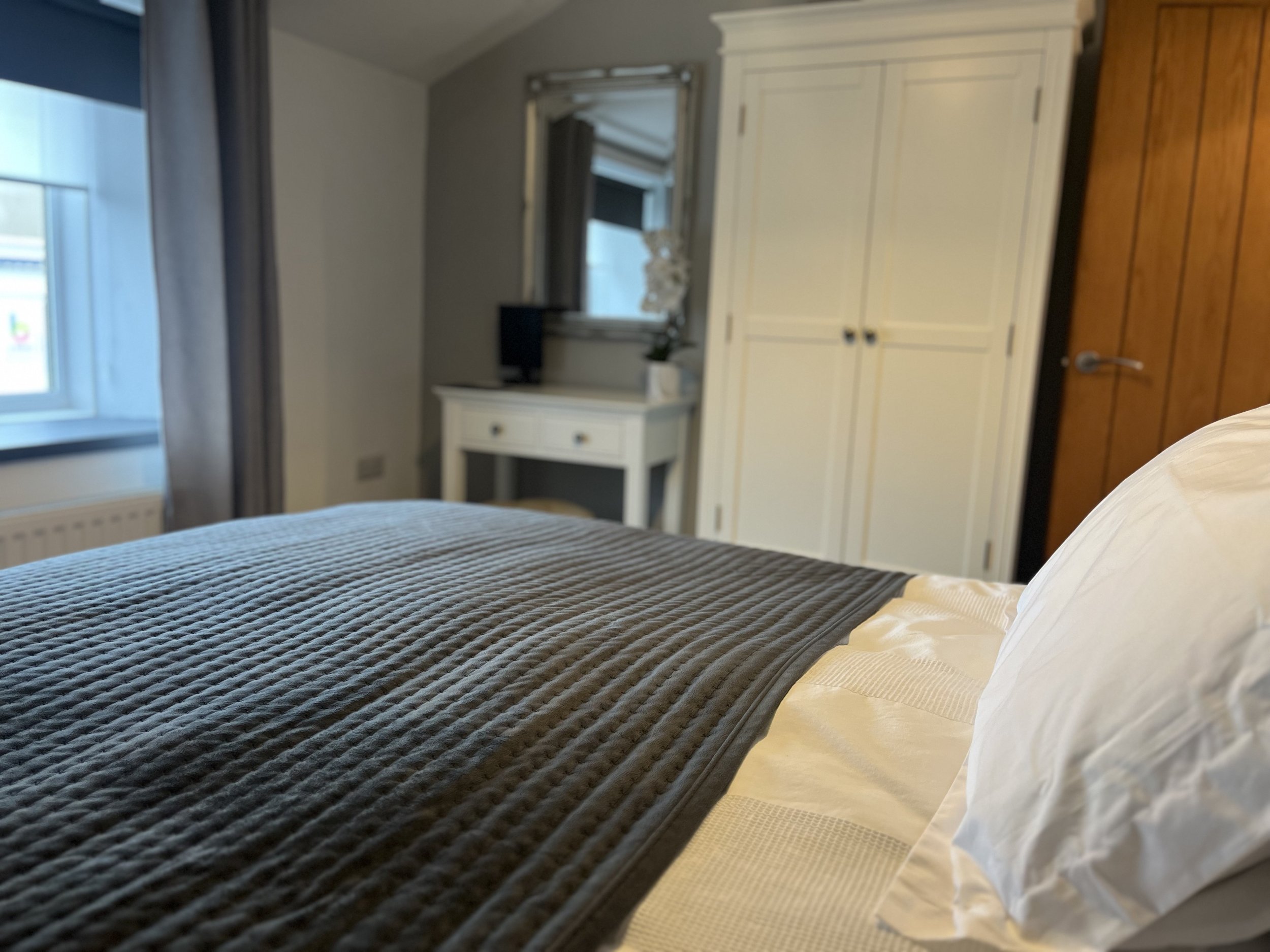 Upstairs you can relax in a king sized bedroom again with a Smart TV.